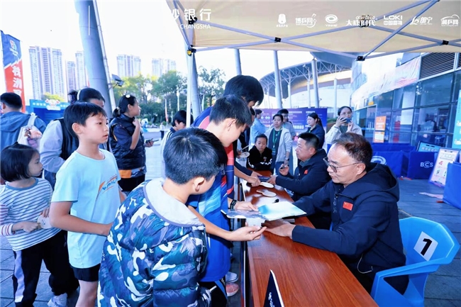 潮动不息,湘乒人书写“乒动三湘”新篇章——作为“乒动三湘”赛事主体内涵的重要载体,“湘乒嘉年华”活动收获了大家的热烈追捧。活动设于比赛场馆入口大厅,分为“企业产品展”“乒乓有奖互动”和“网红打卡秀”三大板块。在企业展销区,长沙银行作为总冠名商,携手银河体育、亚美茶油、中国雷神等企业一同参展,展位前人潮涌动。各企业不仅带来了特色产品,还提供了丰富的资讯。长沙银行提供金融咨询服务,让大家在享受赛事的同时也能了解金融知识;亚美茶油呈现出健康营养的茶油产品,传递绿色生活理念。现场互动游戏是本次嘉年华的一大亮点,活动精心设置了“乐乐乒乓投手”、“银河套圈圈”、“雷神乒乓颠颠乐”、“大康时代纸飞机挑战”等趣味游戏,既丰富了赛事内容,又在欢声笑语中进一步传递了全民健身的运动理念,成功搭建起品牌与运动爱好者之间的情感桥梁。此外,嘉年华活动特别设置了乒乓球世界冠军郭跃华和原中央电视台主持人、著名体育评论员蔡猛的亲签环节。这一精心设计的互动直接将现场气氛推向高潮。