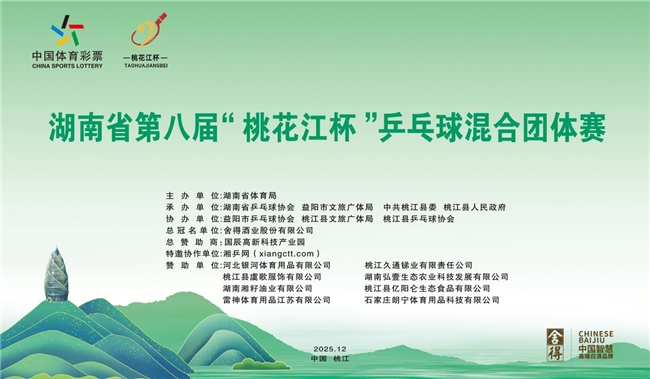 本次赛事由湖南省体育局主办,湖南省乒乓球协会、益阳市文旅广体局、桃江县委、县人民政府联合承办,益阳市乒乓球协会、桃江县文旅广体局、桃江县乒乓球协会、湘乒网协办,舍得酒业股份有限公司冠名,国辰高新科技产业园、河北银河体育用品有限公司等企业赞助,以“国球映竹海 健康伴我行”为主题,深耕“全民参与、分级竞技”的核心特色。