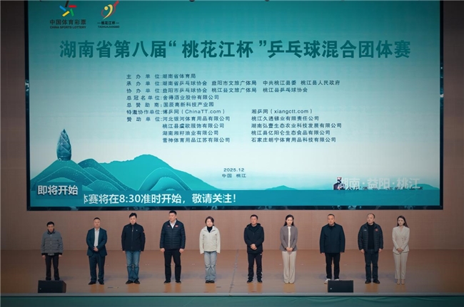 12月20日上午8:20,冬日的益阳桃江县职业中专学校体育馆内暖意融融、掌声雷动,"中国体育彩票"湖南省第八届“桃花江杯”乒乓球混合团体赛在此正式拉开帷幕。湖南省体育局群体处二级调研员刘欣星,湖南省乒羽中心副主任、省乒协副主席兼秘书长肖向阳,益阳市文旅广体局党组成员、副局长陈腊春,桃江县人民政府副县长龚胜芳等领导嘉宾出席,共同见证这一乒乓盛事。